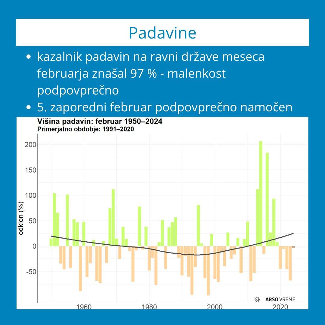 Vremenoslovci ob tem navajajo, da je bil letošnji februar povprečno namočen in podpovprečno osončen.