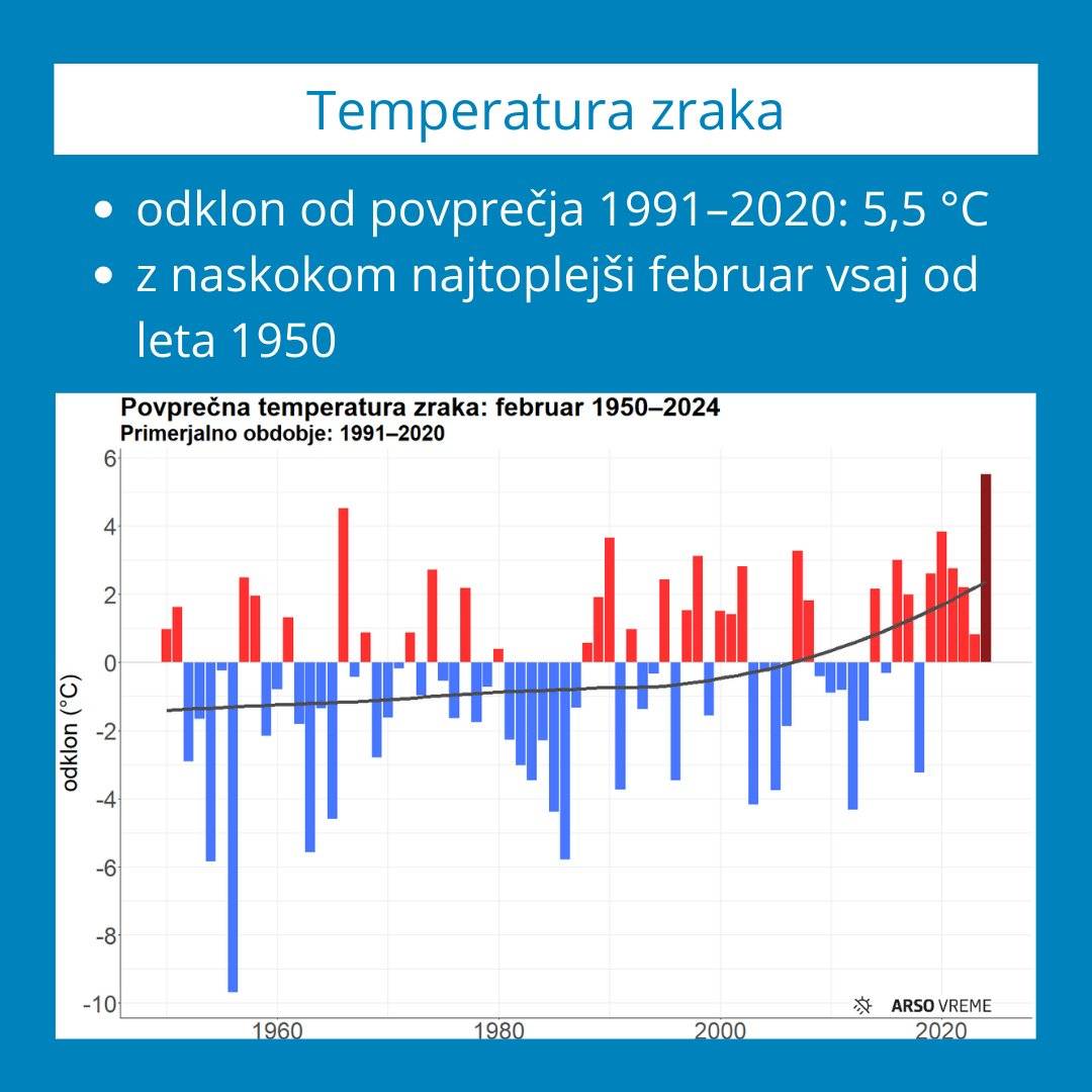 Letošnji februar je že šesti zaporedni s pozitivnim odklonom.