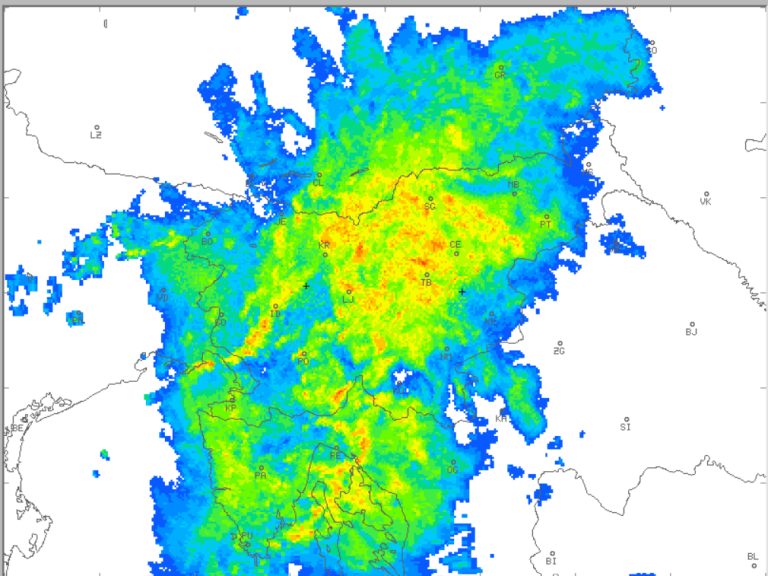 Ponoči so padavine že zajele večji del države, nastajajo tudi nevihte z nalivi. V jutranjih urah se bo močnejši dež razširil nad vso Slovenijo. Danes čez dan bo v višinah z močnimi jugozahodnimi vetrovi že pritekal hladnejši zrak, pri tleh pa bo še razmeroma toplo. Ozračje bo vse bolj nestabilno, vreme bo zelo spremenljivo, nastajale bodo krajevne plohe in nevihte z nalivi, ki bodo pogostejši na zahodu in jugu.