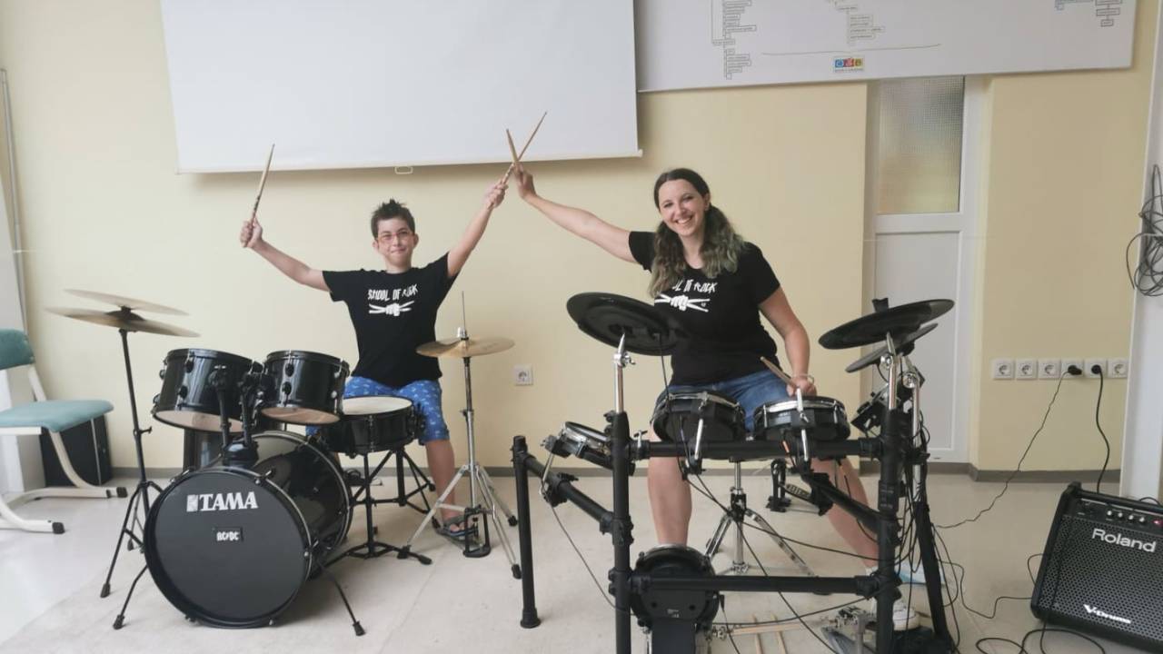 »Danes sta končno izpolnila skrito željo in skupaj odigrala duet na bobnih v šoli in najlepše možno zaključila to noro in nepozabno šolsko leto! Četrti razred nam bo prav zaradi tega ostal v večnem spominu,« čustveno zapiše mama Tanja.
