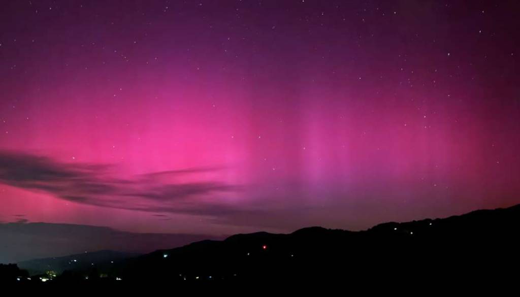 Fotograf Sandi Kelc je ujel osupljiv prizor severnega sija, ki je osvetljeval nočno nebo nad Pohorjem.