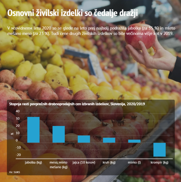 Morda bolj zanimivi podatki so ti, ki razkrivajo živila, si so se v covidnem letu 2020 najbolj podražila.