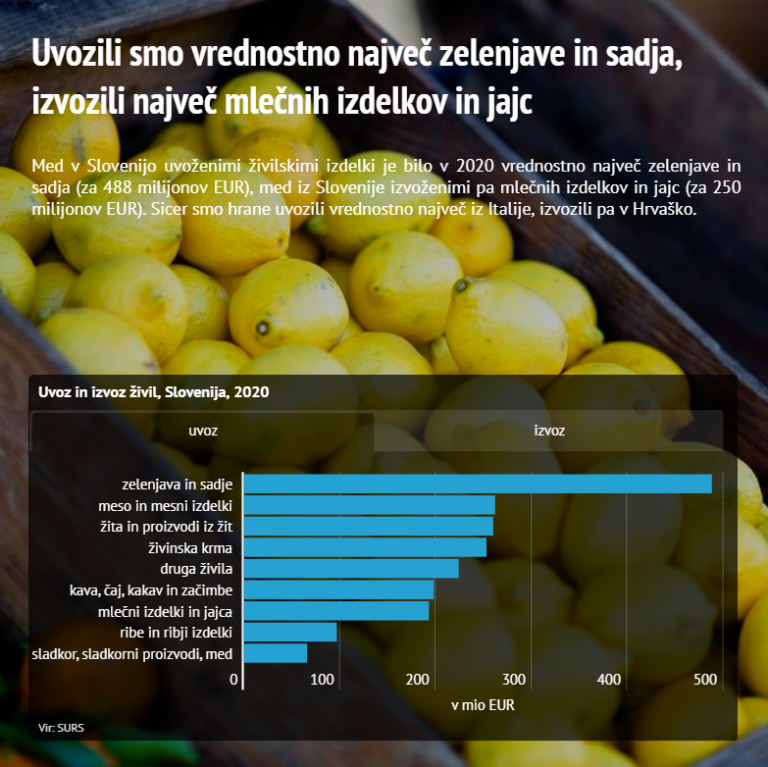 Največ uvozili zelenjave in sadja, izvozili pa mlečnih izdelkov in jajc