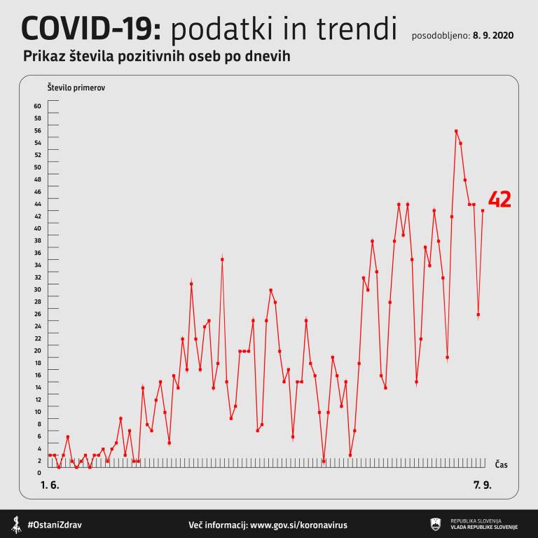 V Sloveniji so včeraj, 7. septembra, opravili 1581 testiranj na novi koronavirus. Potrdili so 42 novih okužb.