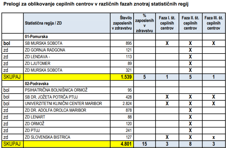 V prvi fazi so v Podravju kot cepilni centri opredeljeni Splošna bolnišnica dr. Jožeta Potrča Ptuj, Univerzitetni klinični center Maribor in Zdravstveni dom Slovenska Bistrica.