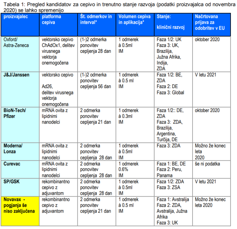 Po zadnjih informacijah naj bi tudi Evropska agencija za zdravila temu RNA cepivu, ki temelji na novi tehnologiji, dala zeleno luč še pred koncem leta.