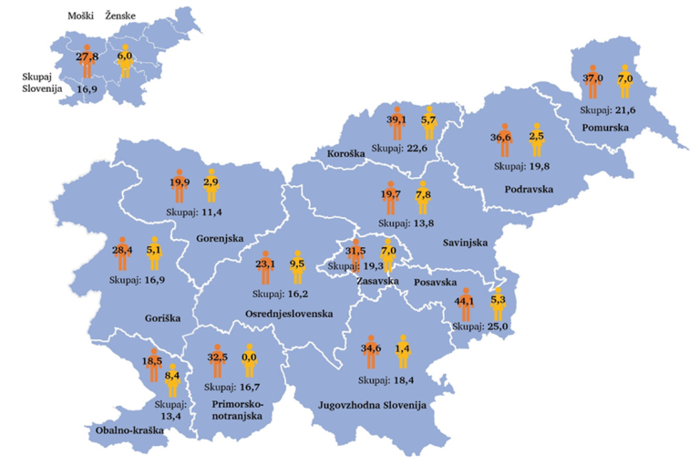 Prav tako so v Sloveniji regionalne razlike v številu samomorov še vedno prisotne tudi med regijami. Med njimi izstopajo regije na vzhodu države, ki imajo višji količnik od slovenskega povprečja. Lani so najvišjega izmerili v Posavski regiji.