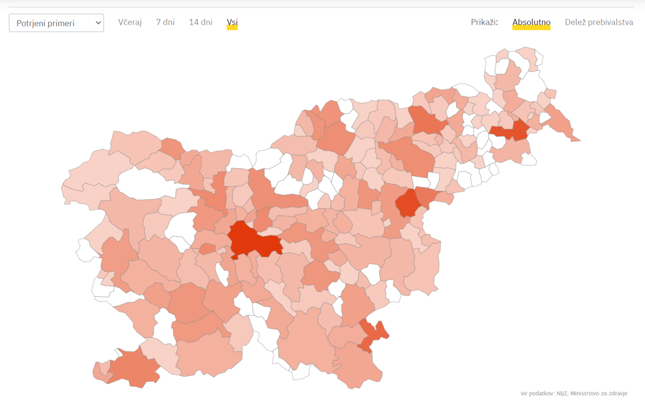 Po dve okužbi so zabeležili v občinah Krško, Šentjernej in Dravograd.