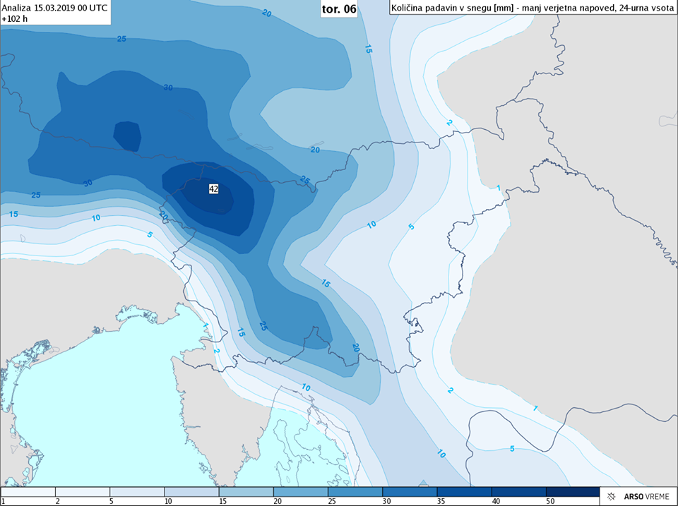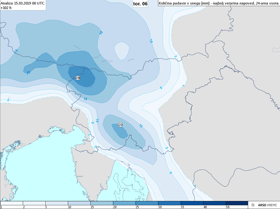 Ob prehodu hladne fronte se bo hitro ohladilo, spuščala se bo tudi meja sneženja. Zaenkrat je še precejšnja negotovost, kdaj se bo dejansko pričelo hladiti in kako izrazita bo ohladitev, zato je po besedah vremenoslovcev težje določljiva tudi meja sneženja in količina novega snega. Nad okoli 700 metrov nad morjem bo zelo verjetno dež hitro prešel v sneg, po nižinah pa je sneženje še negotovo.