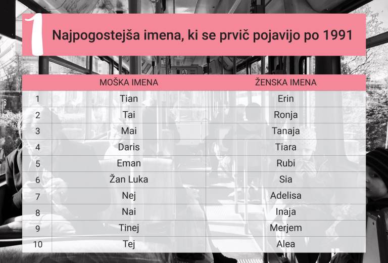 Tudi v Sloveniji starši izbirajo imena, ki jih še do nedavnega pri nas še ni bilo. Tako je najpogostejše žensko ime, ki se je prvič pojavilo po letu 1991, Erin. V Sloveniji živi 133 žensk s tem imenom. Med sodobnimi fantovskimi imeni je na prvem mestu Tian. S tem imenom se identificira 1.184 prebivalcev Slovenije.