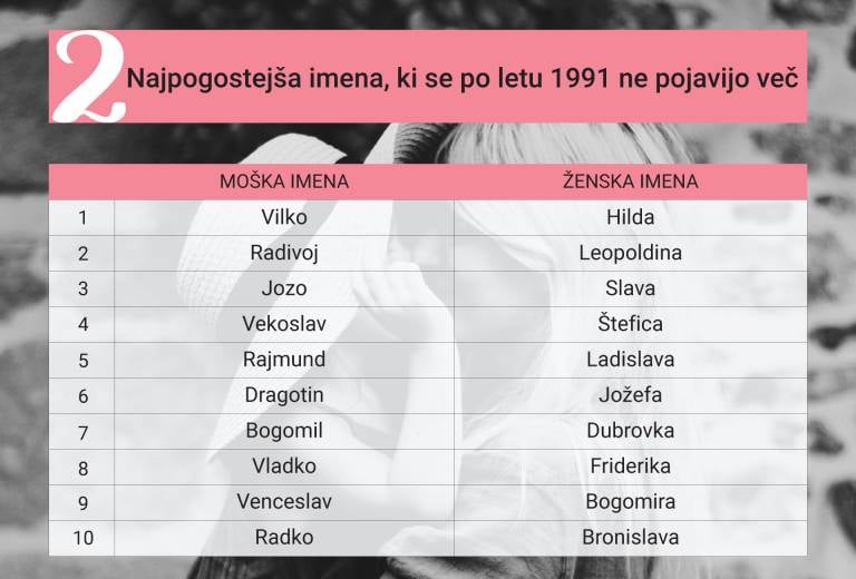 Na drugi strani nekdaj tradicionalna imena danes izginjajo. Vse manj je tudi poimenovanja naraščaja po starših, babicah in dedkih. Danes ni skoraj že težko predstavljamo, da bi nekdo poklical Hildo in bi se oglasila triletna deklica. Hilda je eno izmed mnogih imen, ki se po letu 1991 ne pojavljajo več.