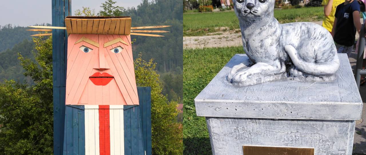 V občini Moravče, kjer je pred leti stal tako imenovani slovenski Kip svobode, ki spominja na ameriškega predsednika Trumpa, so zdaj postavili obeležje mačku.