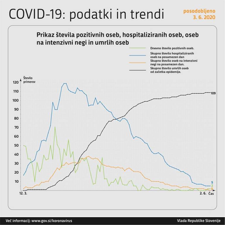 Skupno število umrlih zaradi covid-19 v Sloveniji torej ostaja 109.