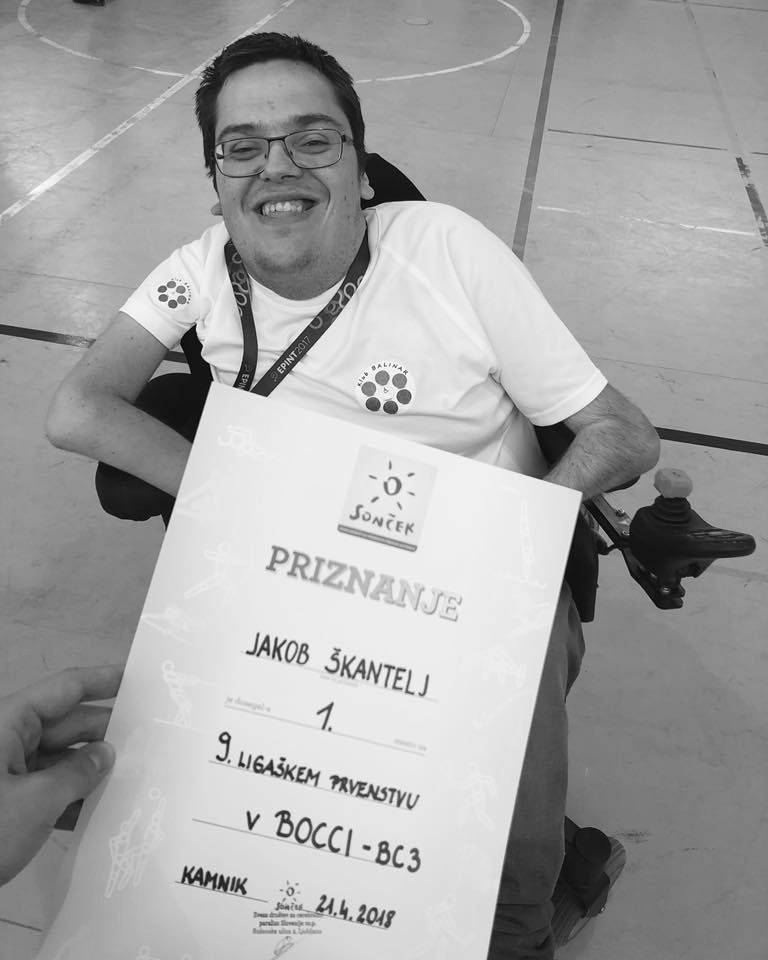 »Sporočamo žalostno vest, da je v 32. letu umrl Jakob Škantelj, nekdanji podpredsednik Zveze za šport invalidov Slovenije -Slovenskega paralimpijskega komiteja in naš parašportnik, reprezentant dvoranskega balinanja.«