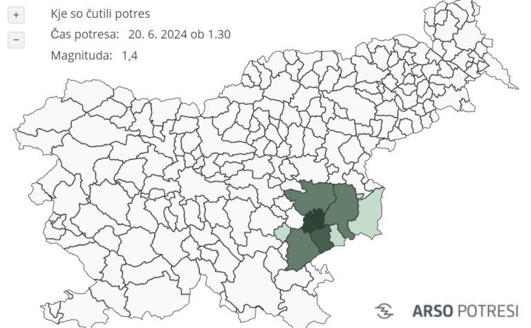 Potres so čutili prebivalci Šmarjeških Toplic in okolice, so sporočili iz Urada za seizmologijo na Agenciji Republike Slovenije za okolje.