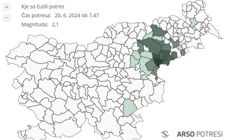 Potres pa so čutili prebivalci Rogaške Slatine, Poljčan, Rogatca in okoliških krajev, so še sporočili iz Urada za seizmologijo na Agenciji Republike Slovenije za okolje.