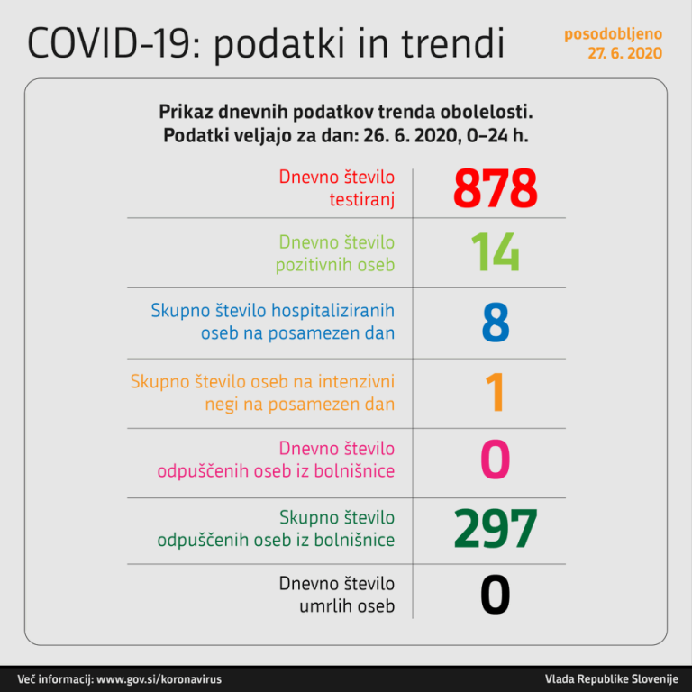 Včeraj, 26. junija, so v Sloveniji opravili 878 testiranj za novi koronavirus.
