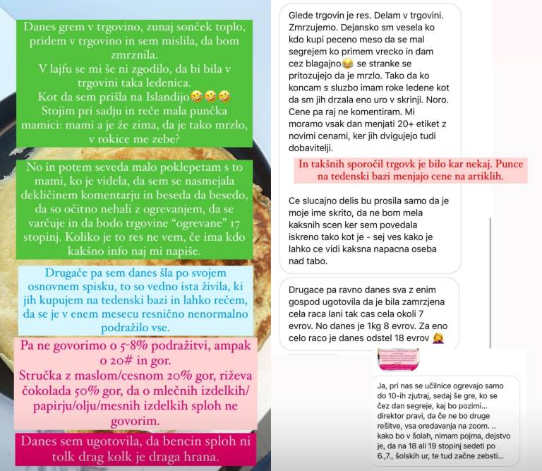 Vplivnica je svojim sledilcem nato zastavila vprašanje, ali drži, da v trgovinah varčujejo z ogrevanjem in da bo gretje v trgovinah le na 17 stopinj Celzija.