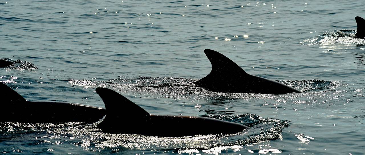 Jata delfinov je zjutraj zaplavala v Piranskem zalivu.