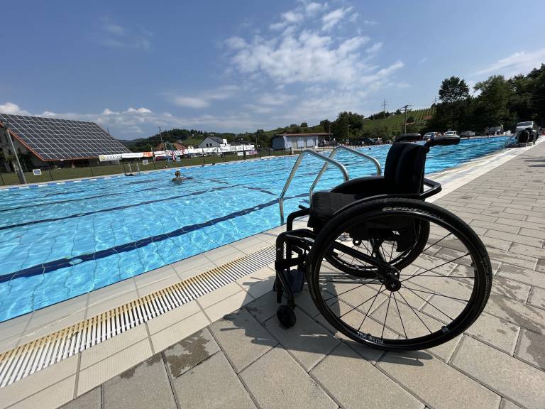 Voziček je tako tokrat ostal ob robu bazena, čeprav je zaradi zahrbtne nevrološke bolezni že tri leta vsakdanji spremljevalec 21-letnice.