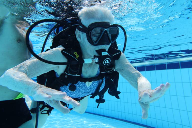 Potapljanje je danes preizkusila tudi 86-letnica.