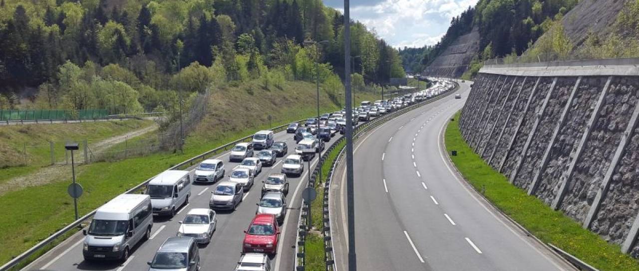 Po podatkih Prometno-informacijskega centra za državne ceste nastajata daljša zastoja tovornih vozil proti Avstriji pred predorom Karavanke, gre za zastoj, ki je dolg približno tri kilometre, prav tako zastoja nastaja pred prehodom Šentilj, ki je dolg že pet kilometrov.