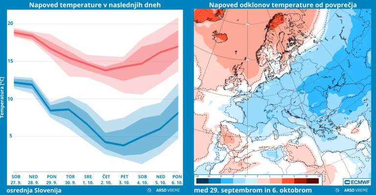 Čeprav smo septembra na nekaterih območjih še izmerili temperature okoli 30 stopinj Celzija, se ozračje postopoma ohlaja. V prihodnjem tednu bo dotok hladnega zraka s severovzhoda še dodatno znižal temperature.