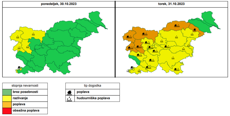 Po podatkih Urada za hidrologijo, Agencije Republike Slovenije za okolje, bodo reke v severozahodni Sloveniji, predvsem v zgornjem in srednjem Posočju ter v porečju Save Bohinjke, v ponedeljek ponoči in torek zjutraj ob krepitvi padavin močneje naraščale.