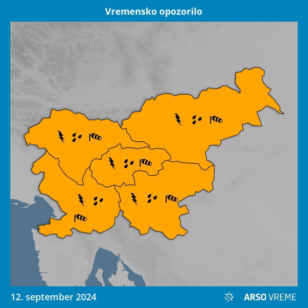 Ponoči se bodo plohe in nevihte na zahodu okrepile in širile proti vzhodu. Agencija za okolje je pred dvodnevnimi obilnimi padavinami, ki jih bodo spremljale tudi nevihte in močnejši sunki vetra, izdala oranžno vremensko opozorilo za vso državo.