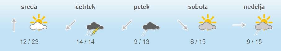 Popoldanski prehod hladne fronte bodo spremljali okrepljeni sunki severnega vetra. Izrazito se bo ohladilo, temperatura zraka se bo popoldne spustila za okoli deset stopinj Celzija.
