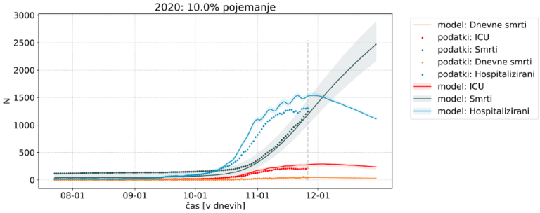 Tako izpostavljajo, da glede na starostno porazdelitev in spol okuženih, ki smo jih do zdaj že odkrili, lahko na podlagi dosedanjih podatkov ocenimo, da bo celo v tem skoraj neverjetnemu scenariju do konca decembra umrlo še od 400 do 800 ljudi. Poleg tega bi po tem scenariju imeli konec decembra še približno 300 hospitaliziranih in 80 posameznikov na intenzivnih enotah.