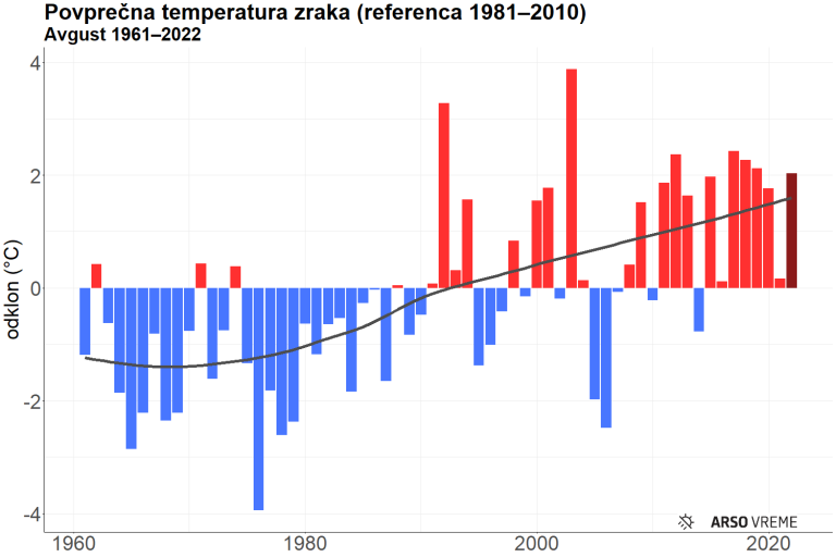 Kot so zapisali, je bila avgustovska povprečna temperatura zraka na ravni celotne Slovenije močno nad povprečjem dolgoletnega obdobja.