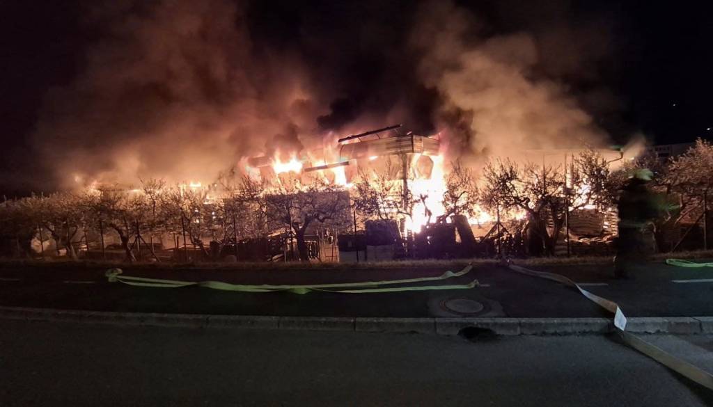 Velik požar v Luciji, gori enota Kmetijske zadruge Agraria Koper.