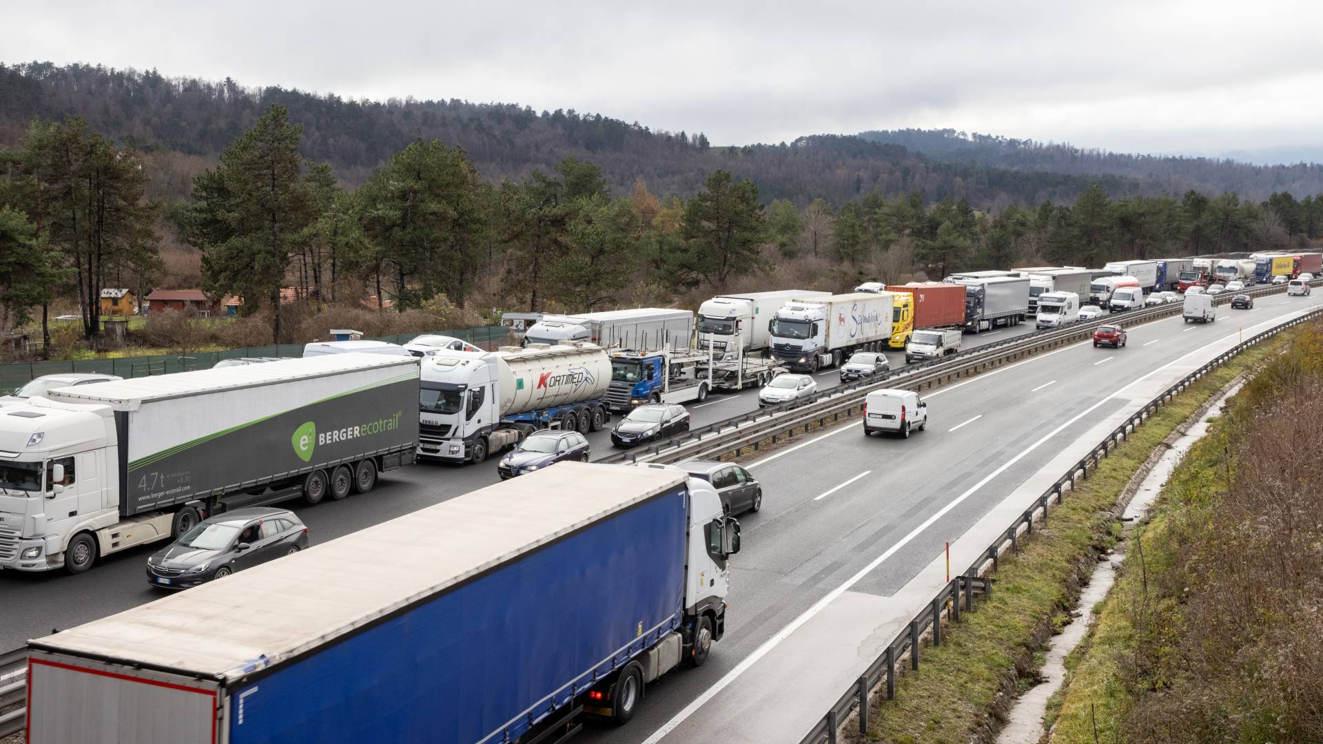 Na avstrijski strani predora Karavanke proti Sloveniji pa je zastoj dolg sedem kilometrov.