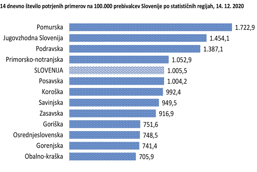 Po podatkih Nacionalnega inštituta za javno zdravje število aktivnih primerov v Sloveniji danes znaša 20.970.