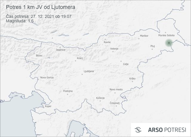 Seizmografi državne mreže potresnih opazovalnic so v ponedeljek ob 19.07 zabeležili šibek potresni sunek, magnitude 1,6. Po prvih podatkih je bilo žarišče potresa 140 kilometrov vzhodno od Ljubljane, v bližini Ljutomera.