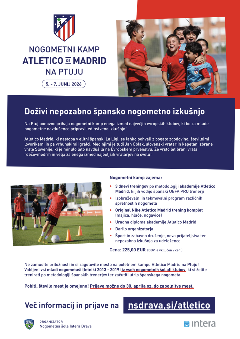 Med 5. in 7. junijem 2026 se na Ptuj vrača uradni nogometni kamp španskega velikana Atlético Madrid.