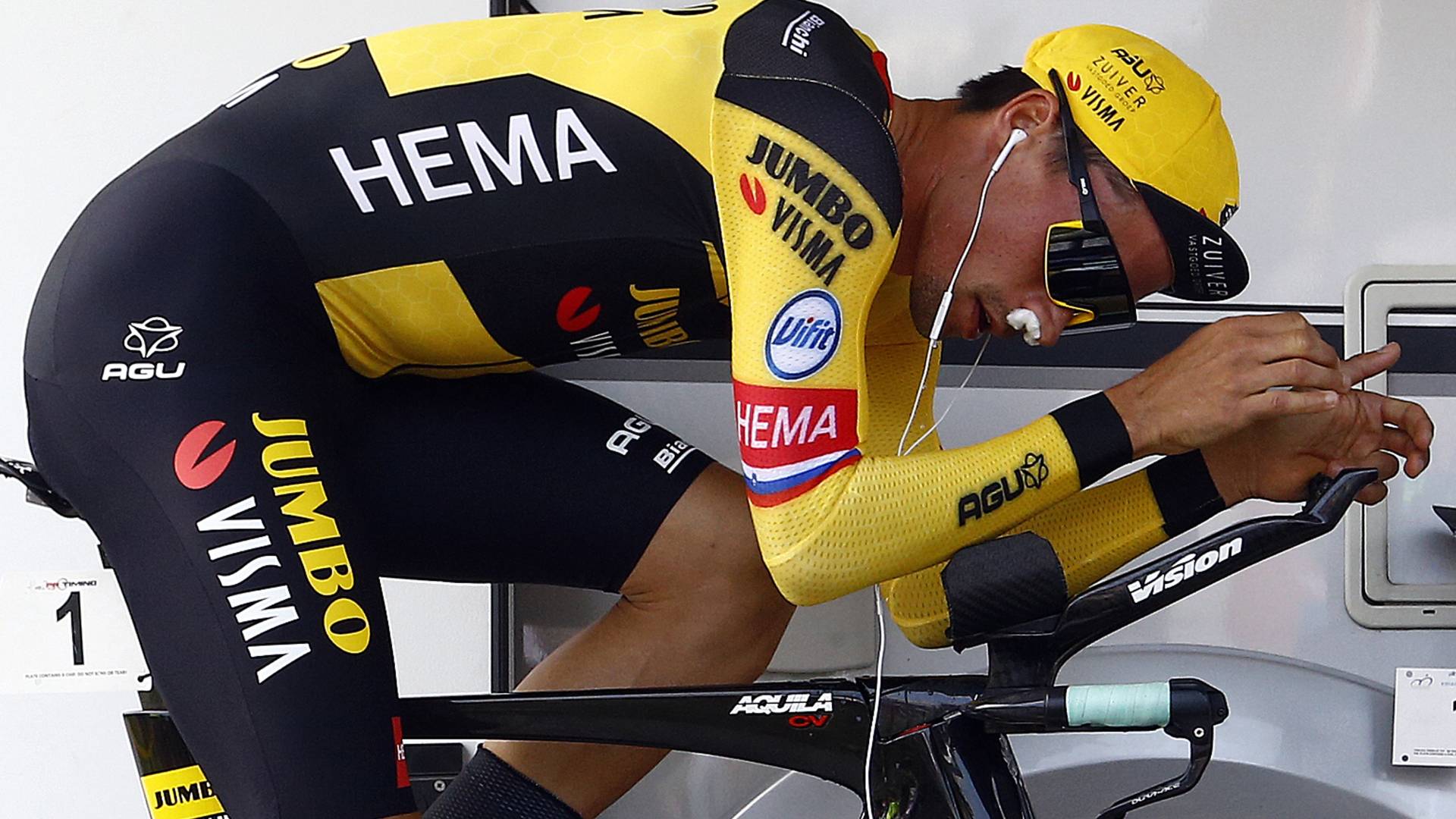 Štiriintridesetletni Roglič, olimpijski prvak v vožnji na čas pred tremi leti ter na SP že srebrn v kronometru pred sedmimi leti, je po 12,5 km ravninskega dela po nekoliko rezervirani vožnji zasedal šele 11. mesto z zaostankom 37 sekund.