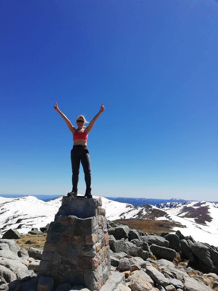 V petek, ko se je zbudila v razkošju mehke in tople postelje v Melbournu, še ni bilo časa za počitek. Razmišljala je kako priti na Mt Kosciuszko, na najvišji vrh Avstralije. Od najbližjega mesta, od koder se lahko povzpneš na najvišji vrh Avstralije, jo je ločilo 600 kilometrov. Načrt je bi hitro narejen in v ponedeljek zjutraj je že bila v mestu Thredbo, kjer sta jo pozdravila sonce in veter. Hoja po snegu ji je dajala občutek domačnosti in po dobrih petih urah se je povzpela na kamen, ki označuje vrh.