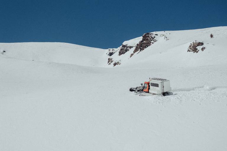 Ker tam ni civilizacije, ni urejenih poti. Zato te prevažajo z ratraki, prilagojenimi potniškemu prometu. Tudi prevoz do hotela poteka z ratraki. Ko v nižinah ni dovolj snega, pa z džipi.