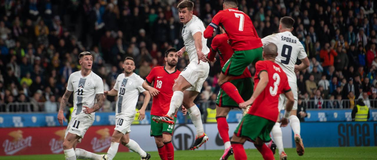 19' Jaka Bijol in Otavio sta se borila v kazenskem prostoru Slovenije, Portugalec se je znašel na tleh, a Irfan Peljto ni podlegel niti pritisku Cristiana Ronalda.