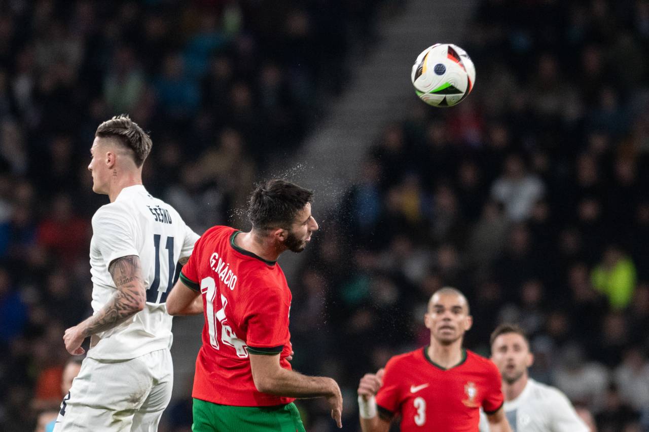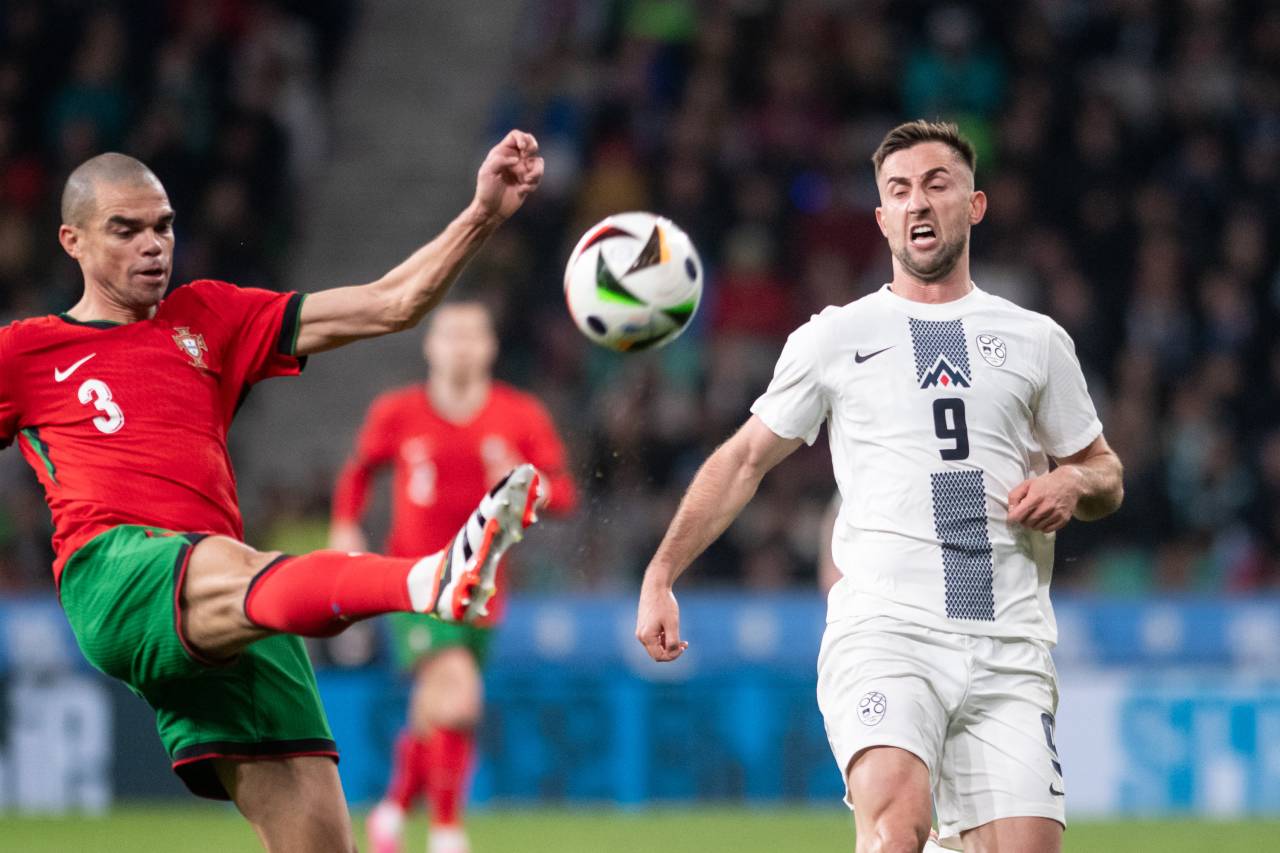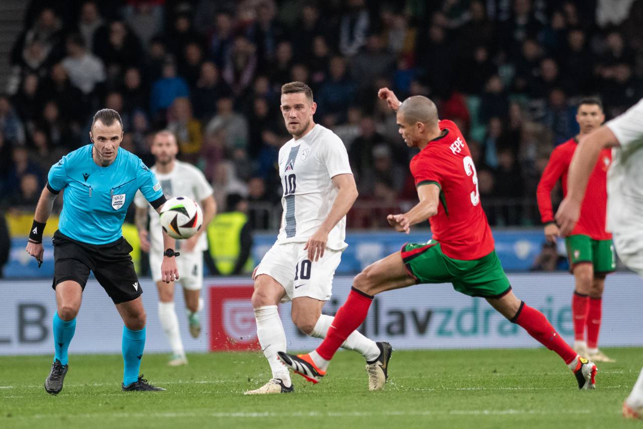 20' Pepe z glavo ni najbolje izbil dolge podaje v kazenski prostor Portugalcev, žoga pa je končala pri Andražu Šporarju. Vratar Diogo Costa, ki je zapustil svoja vrata, bi bil brez moči, a Ljubljančan ni uspel priti do zaključnega udarca, Slovenci pa so ostali tudi brez kota.