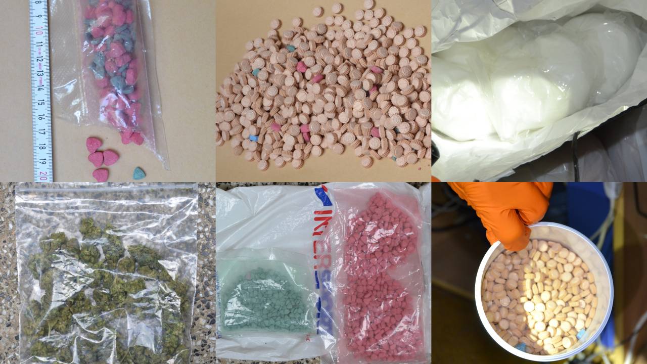 Pri hišni preiskavi so policisti zasegli več vrst prepovedane droge, in sicer 1300 gramov prepovedane droge konoplja, 369 gramov MDMA, 31 gramov kokaina in 166 tablet oksimetolona - anabolični steroidi.