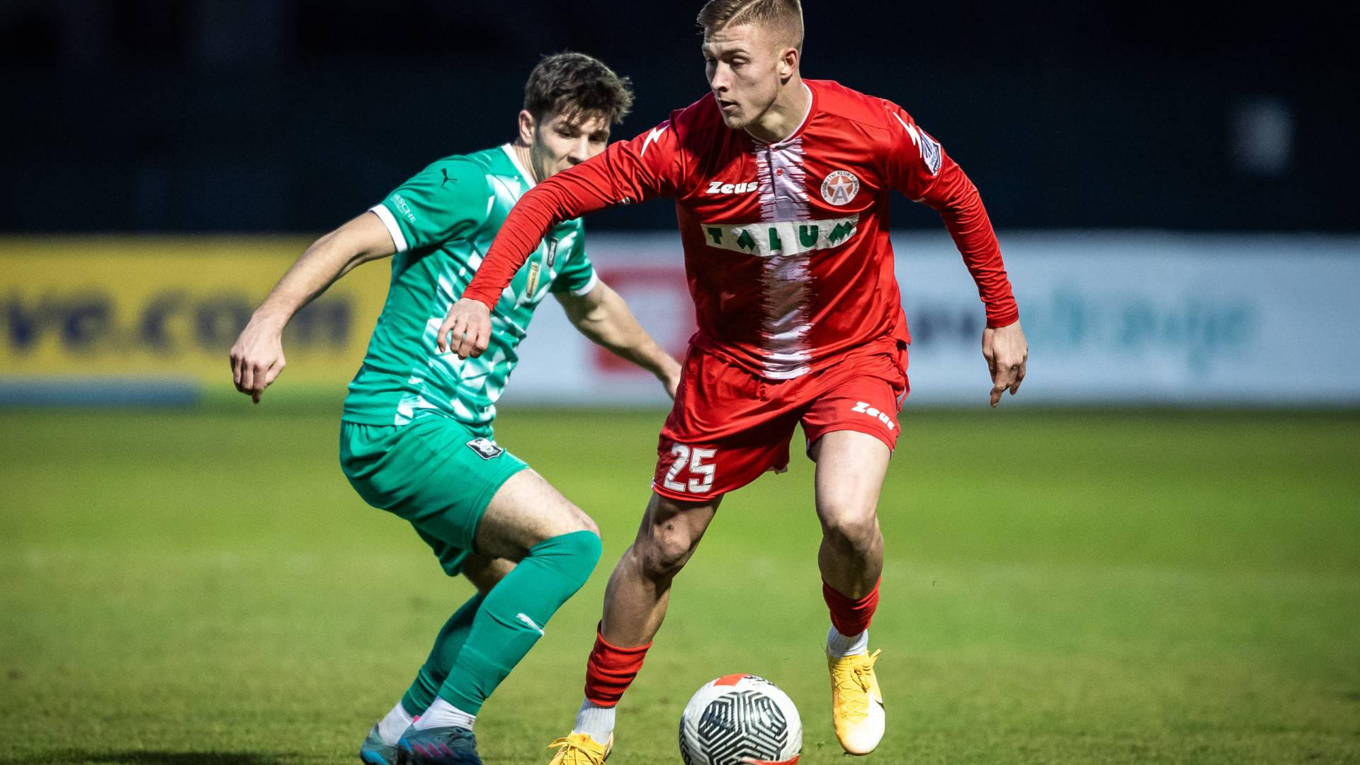 23' RUMENI KARTON! Mario Šubarić je na nedovoljen način zaustavil prodor Davida Sualeheja.