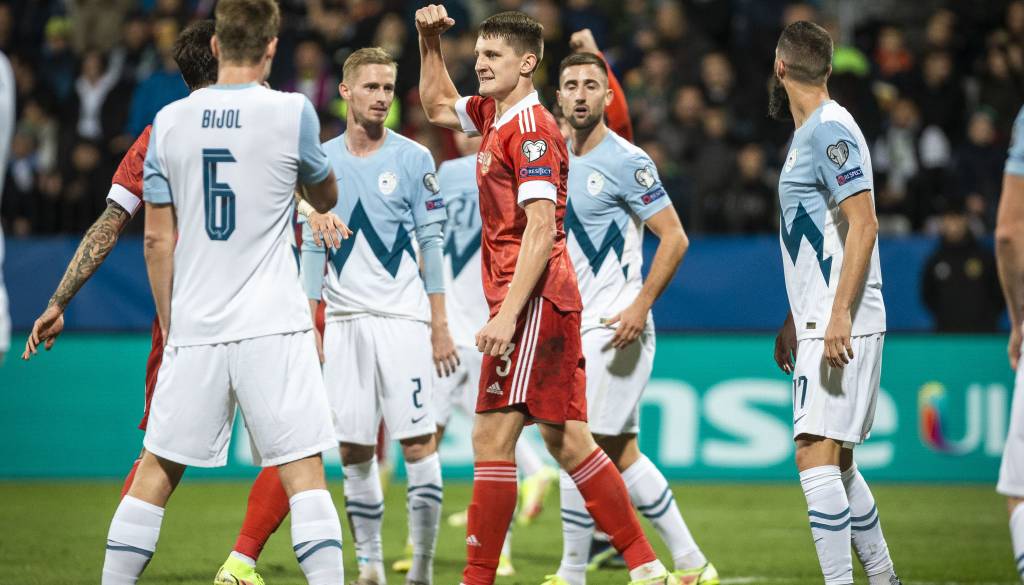 Slovenska nogometna reprezentanca je v Mariboru na osmi tekmi kvalifikacij za svetovno prvenstvo 2022 izgubila proti Rusiji z 1:2 (1:2).