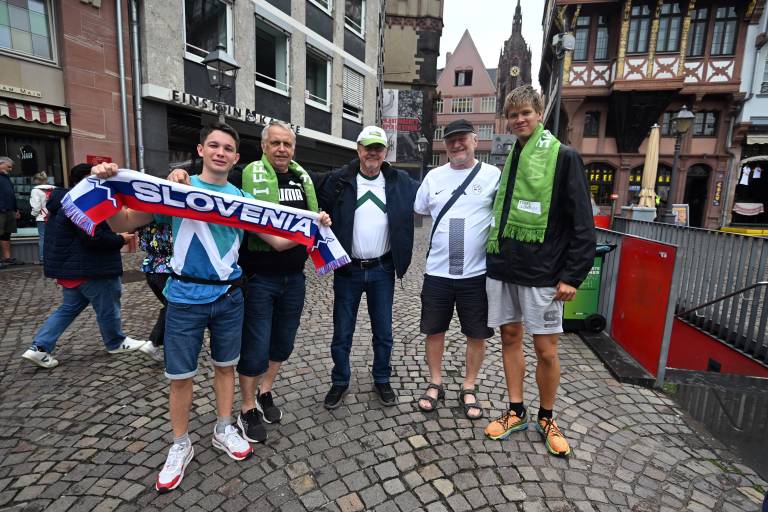 FOTO: Slovenci v Frankfurtu, navijajo tudi številni Ptujčani