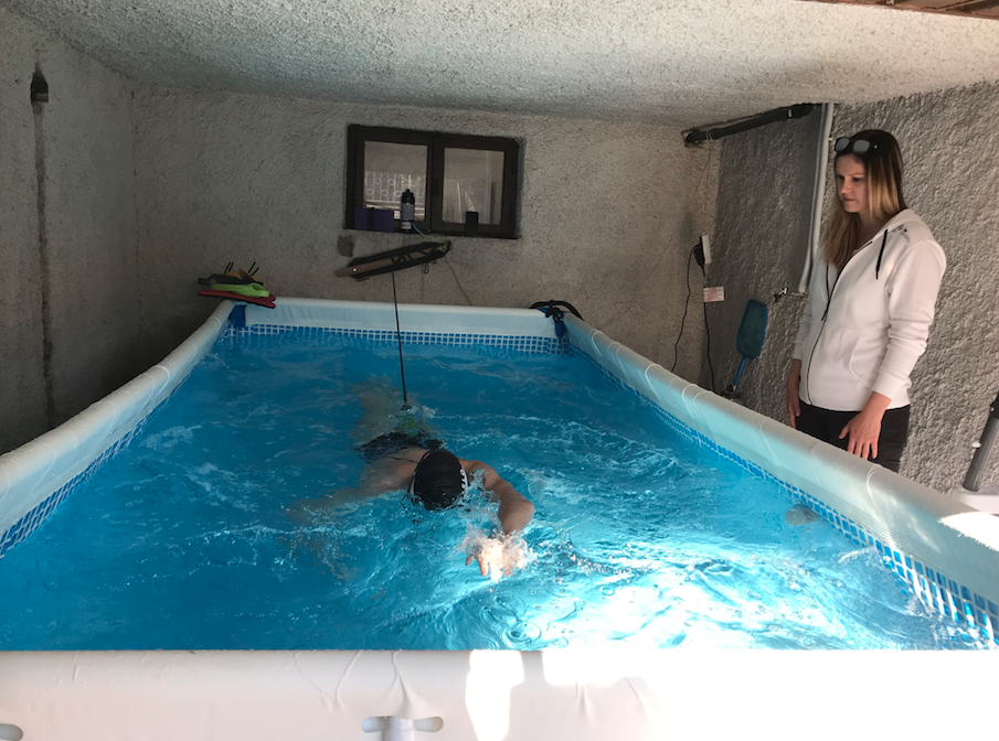 Treningi v montažnem bazenu, ki je postavljen v domači garaži, se precej razlikujejo od tistih, ki jih je vajena mlada mariborska plavalka.