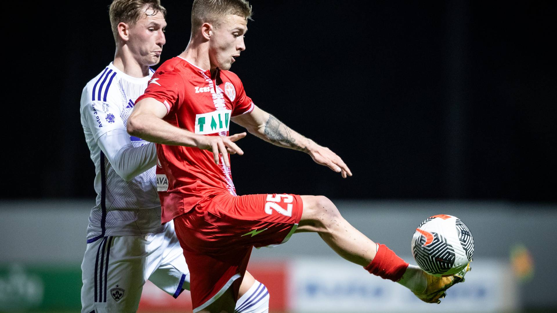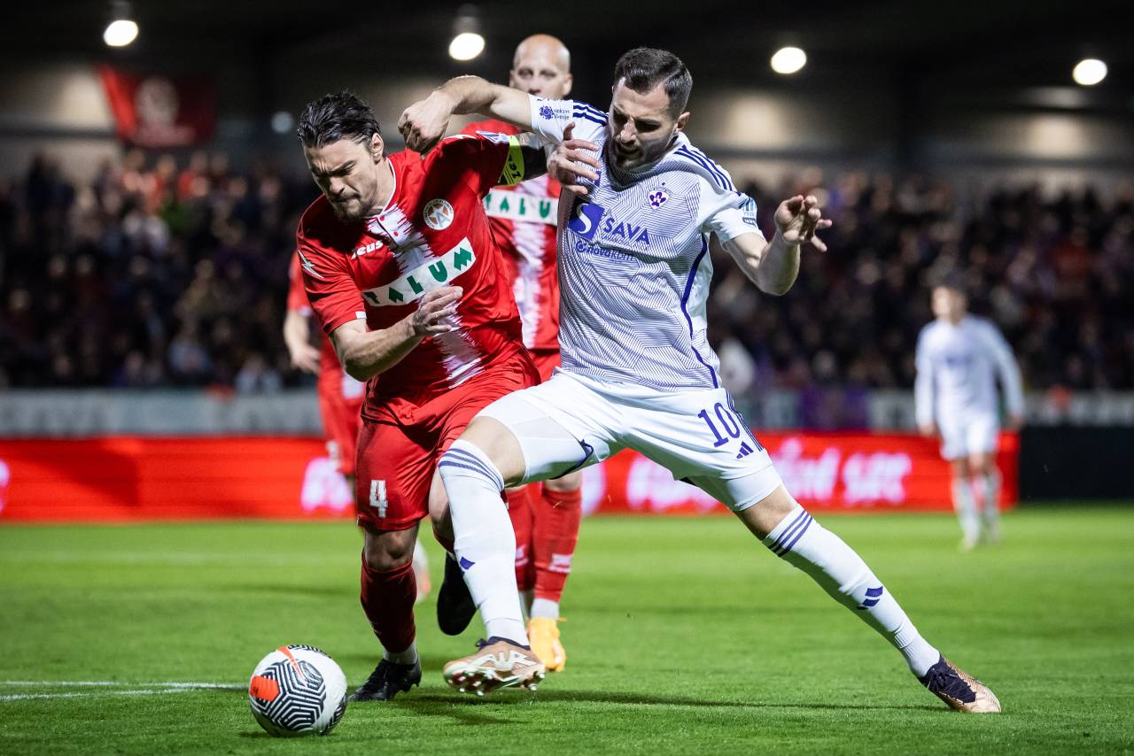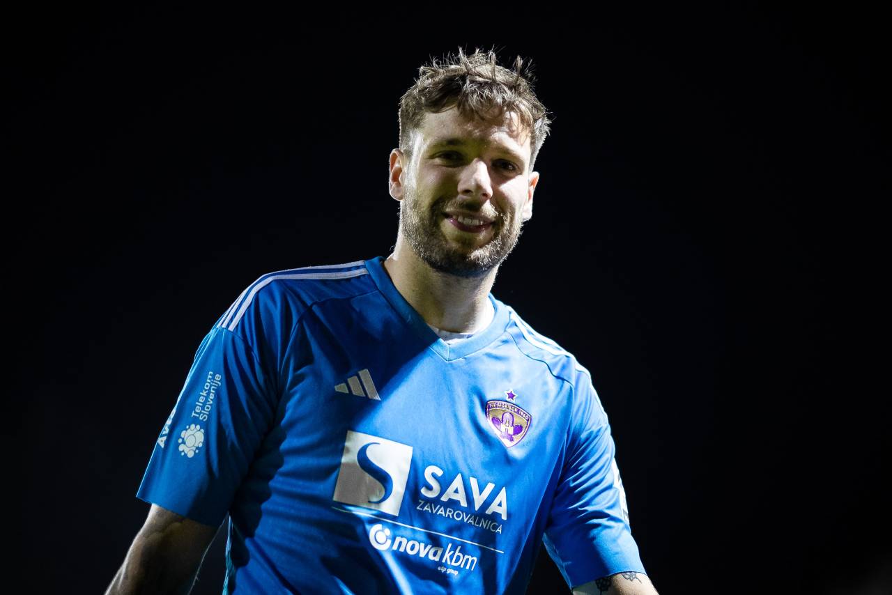 25' PRILOŽNOST! Maks Barišić je s podajo v kazenski prostor zaposlil Arnela Jakupović, ki je iz zahtevnega položaja meril proti oddaljenejši vratnici, a je bil premalo natančen v zaključku.