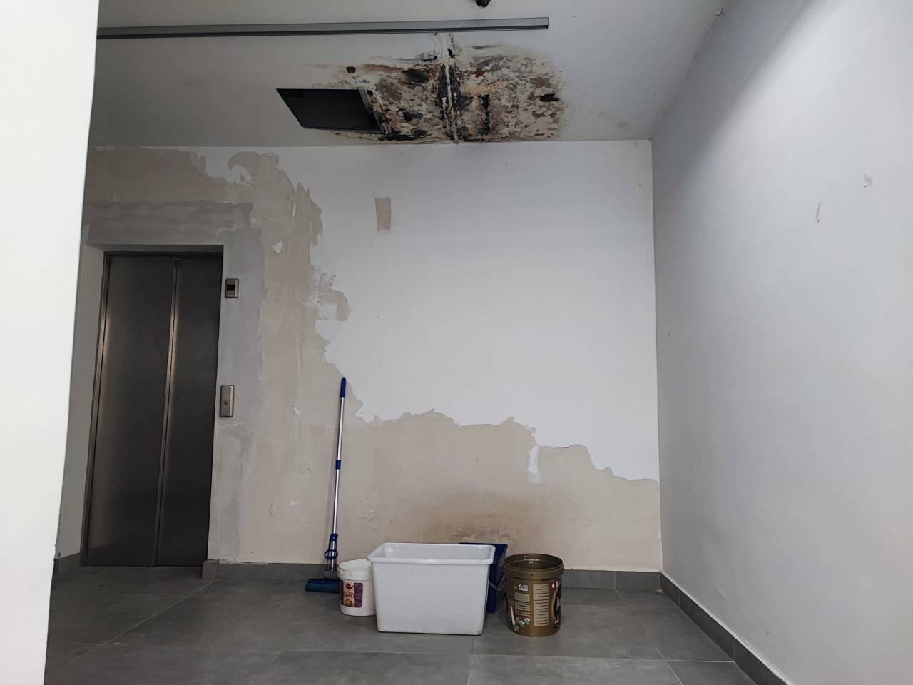 Voda pronica skozi strop in ob stenah, na nekaterih mestih tik ob električni napeljavi, razdelilnih omaricah ali pa tik nad tehniko za ozvočenje.