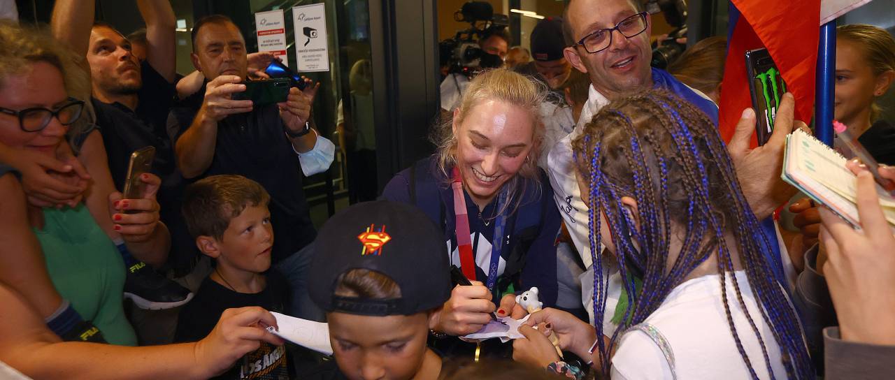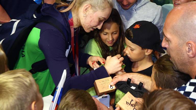 Mlado plezalko so včeraj pozno zvečer pričakali njeni navijači in najbližji.